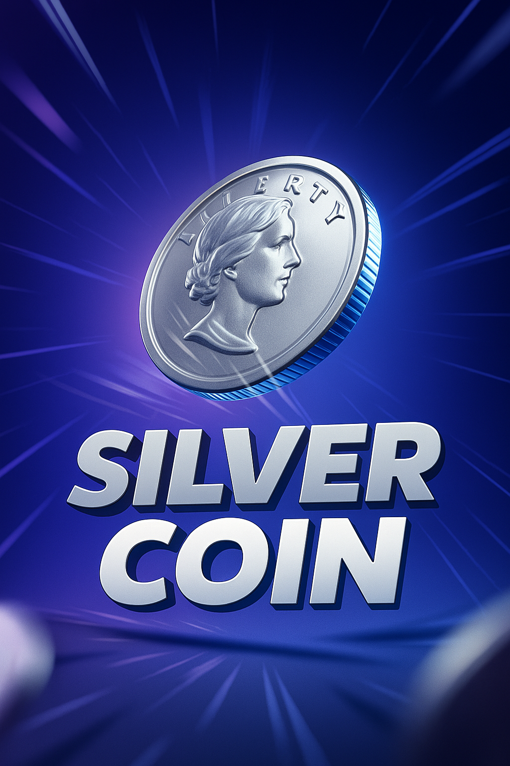 /Collection: /by davooda/Type: PNG/A vibrant 3D illustration of a silver coin set against a smooth gradient background, featuring dynamic lines radiating outward, enhancing the sense of movement and depth.