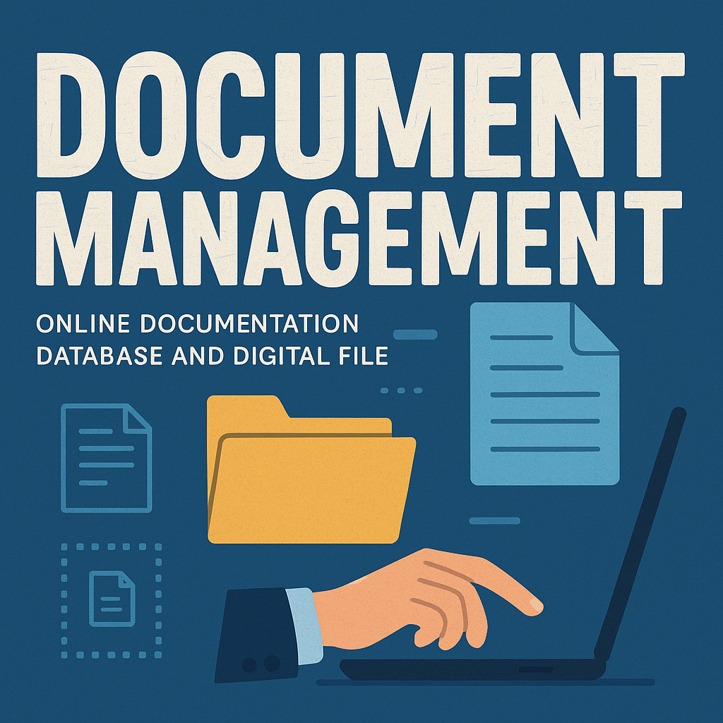 Vector graphic illustrating the concept of document management with a laptop and files, ideal for digital organization and online documentation themes.