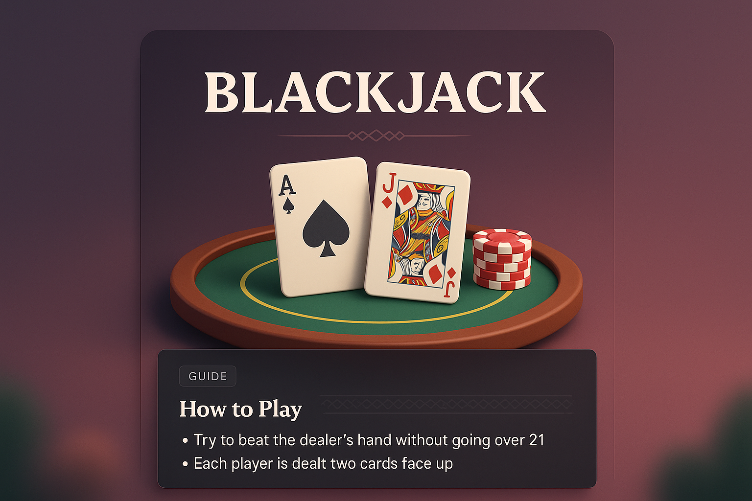 3D Blackjack Table Illustration with Game Instructions