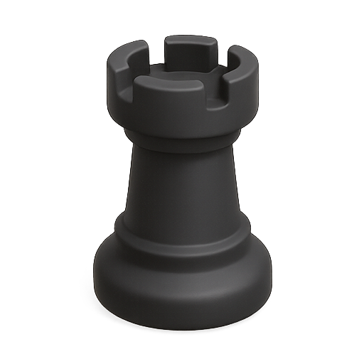 A detailed 3D rendering of a chess rook piece, showcasing its cylindrical base and crenellated top. Ideal for use in gaming graphics or educational materials about chess.