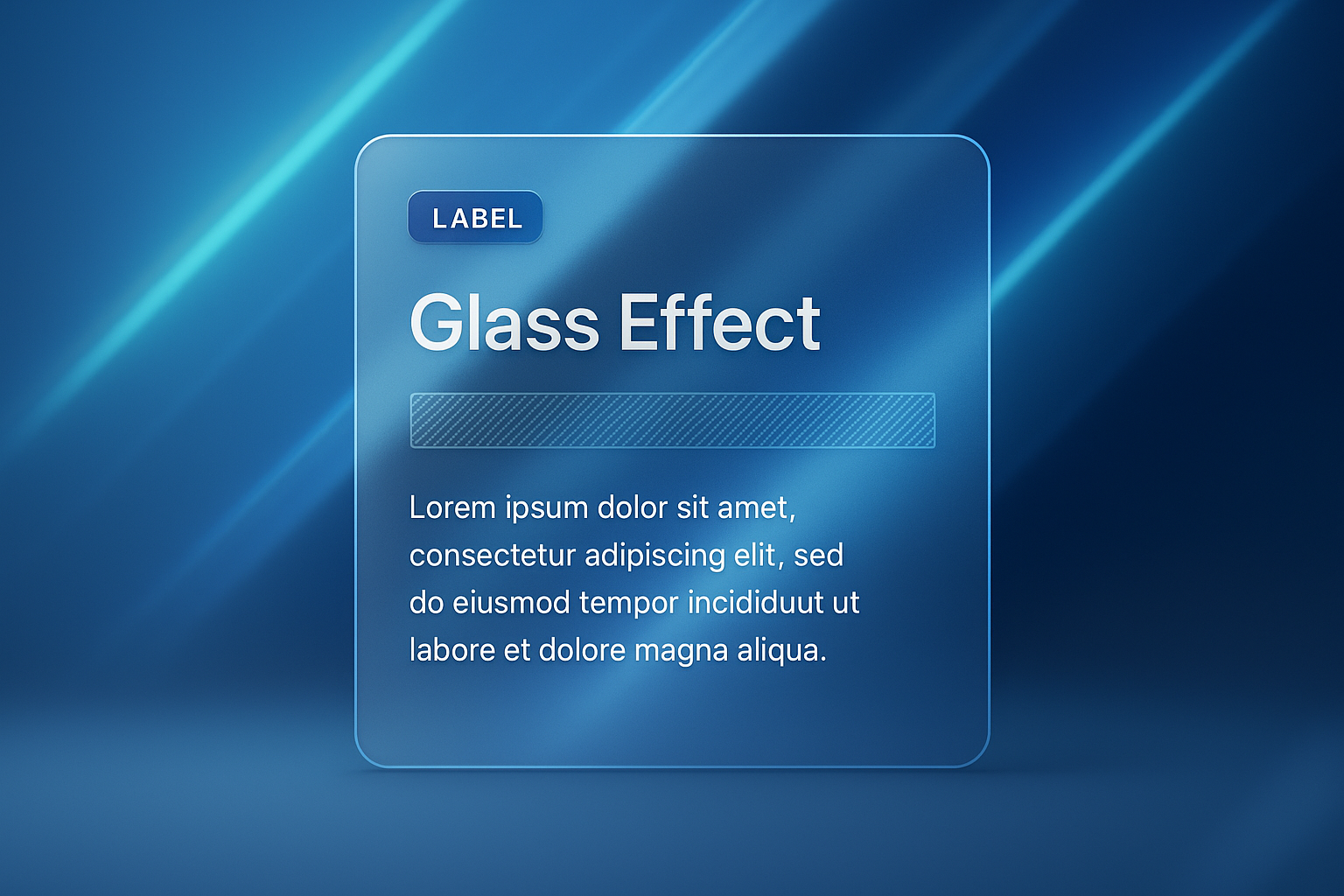 A modern abstract background featuring elegant blue gradients and bright diagonal lines. It includes a glass effect text block with a label, adding depth and a contemporary touch.