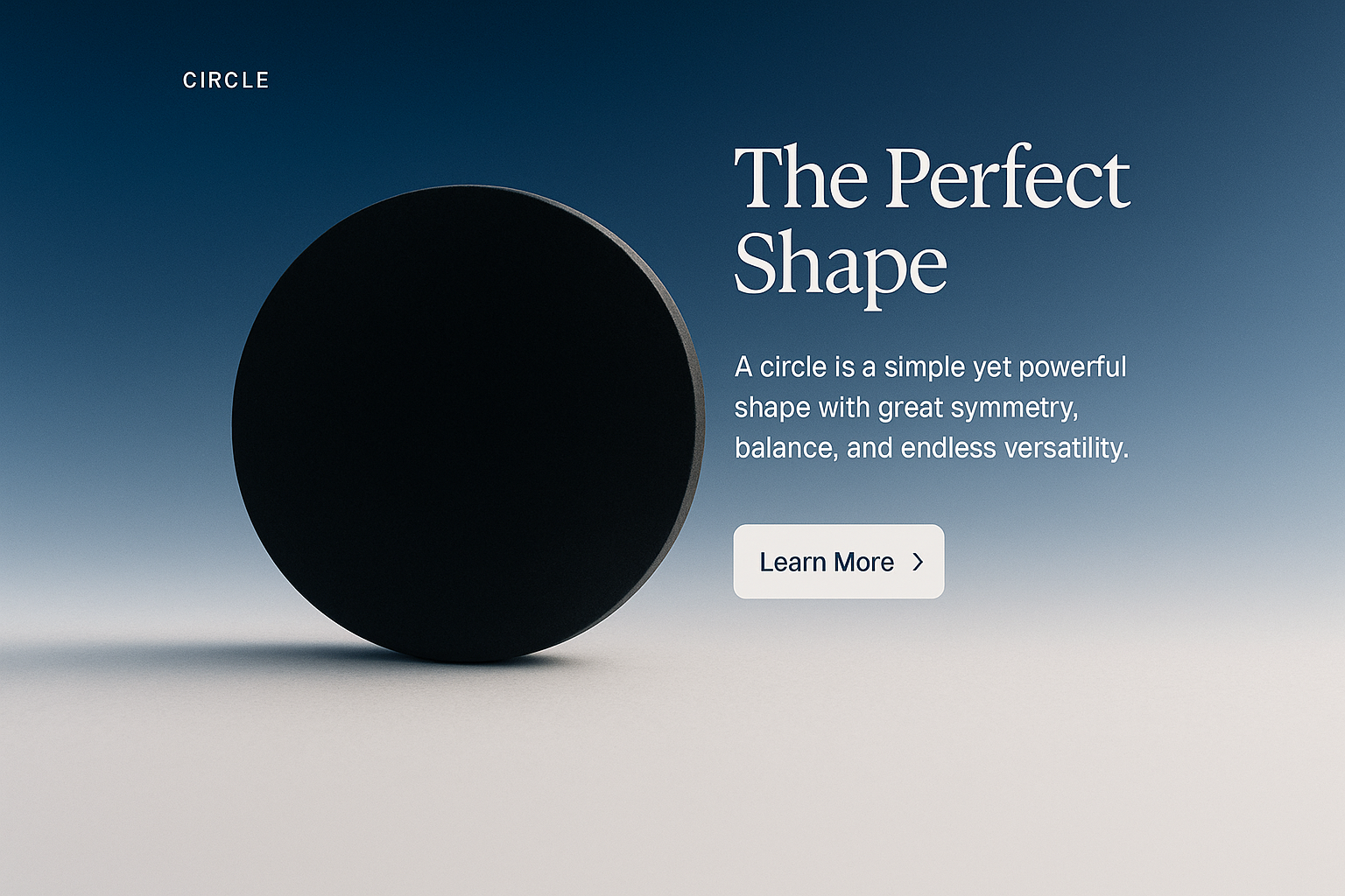 A visually striking design featuring a prominent black circle on a gradient background. Accompanied by a concise title and a brief description, it invites user interaction through an action button.