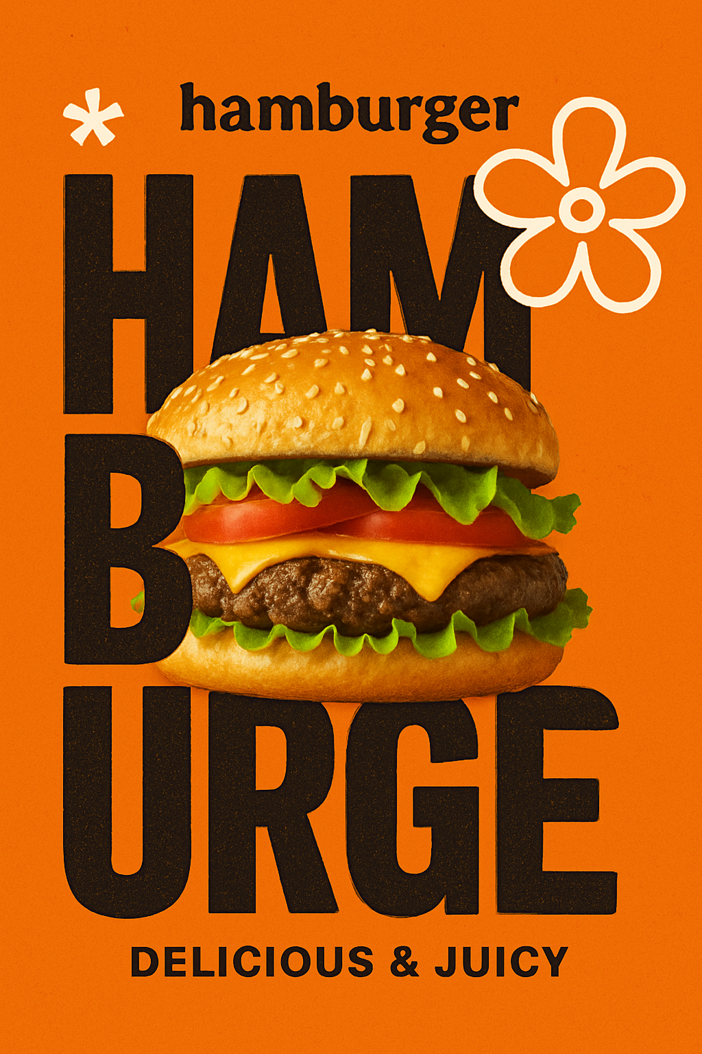 Vibrant Hamburger Promotion Graphic with Bold Typography