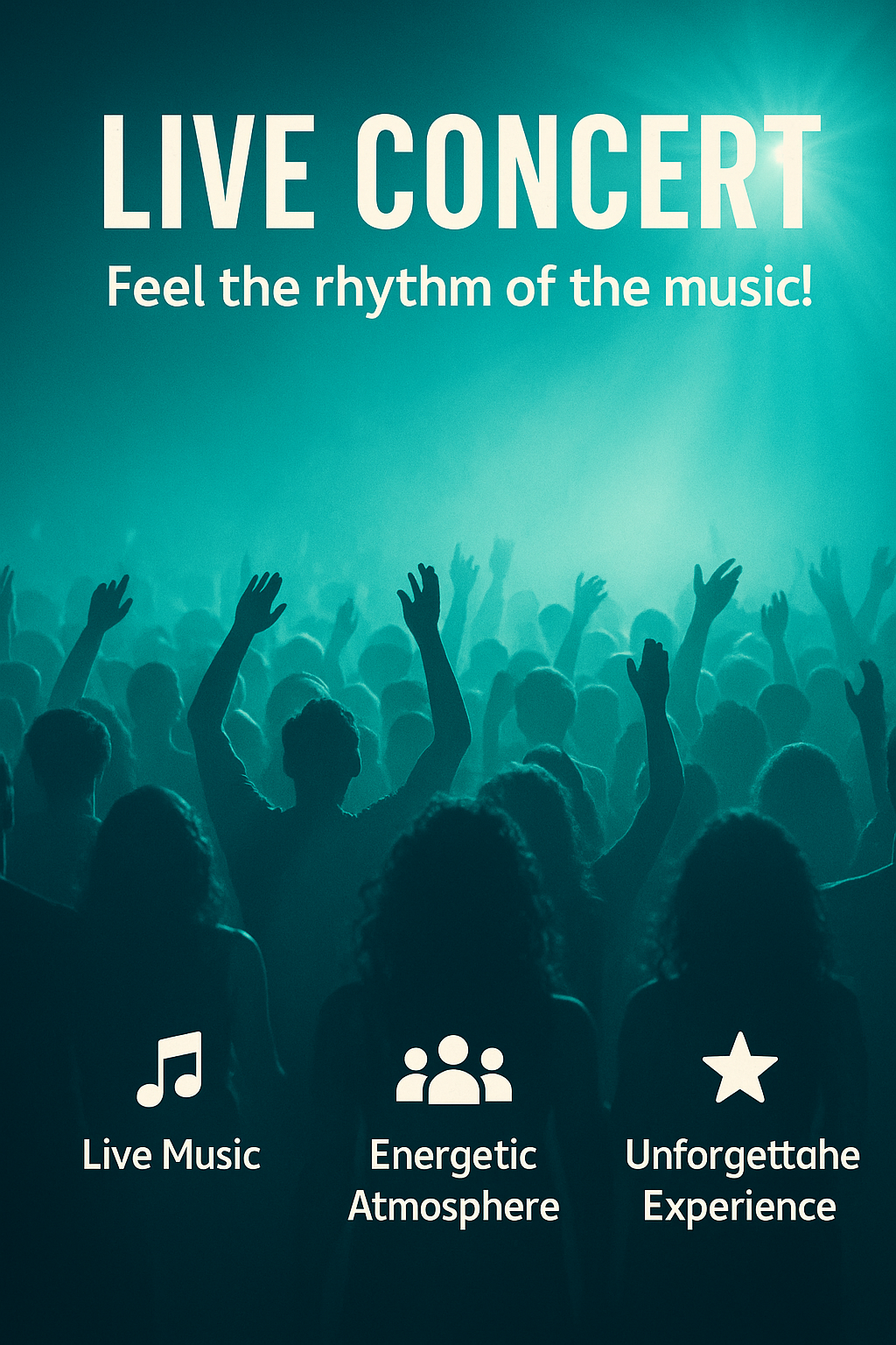 Vibrant Live Concert Promotional Graphic with Audience Engagement