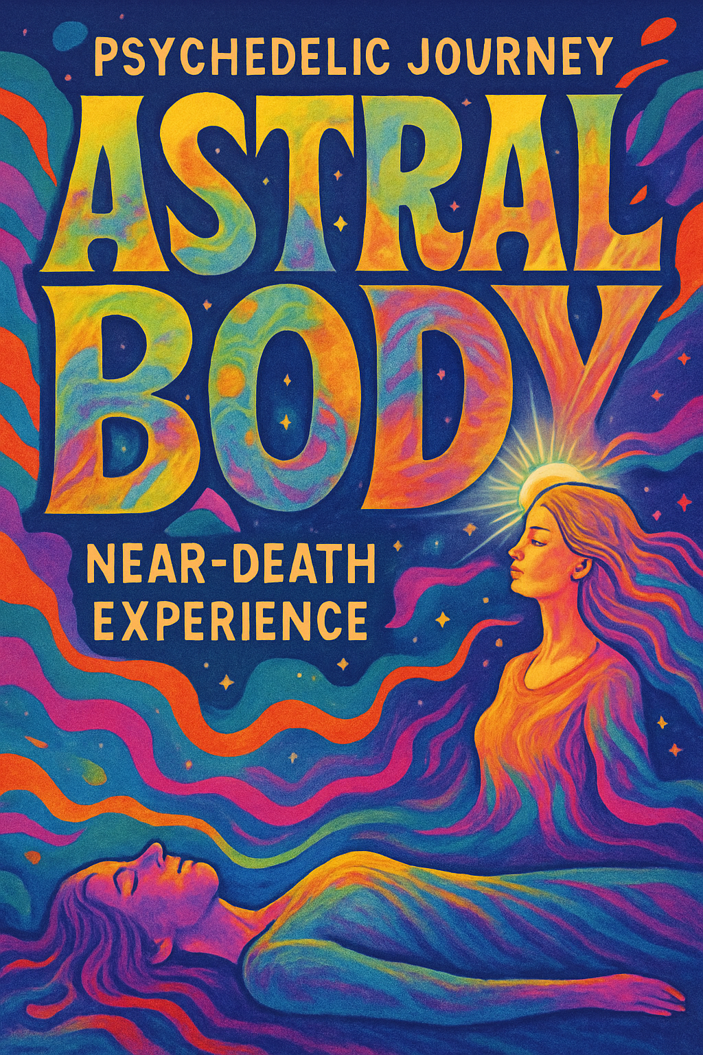 Colorful and imaginative artwork depicting the concept of astral projection and near-death experiences, ideal for spiritual or wellness-related content.