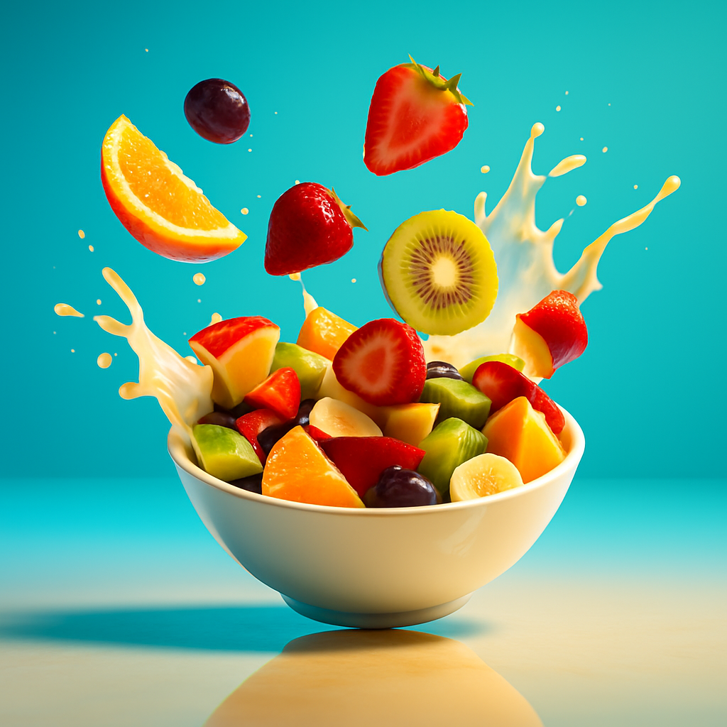 Dynamic Fruit Salad in Realistic Style with Splash Effect