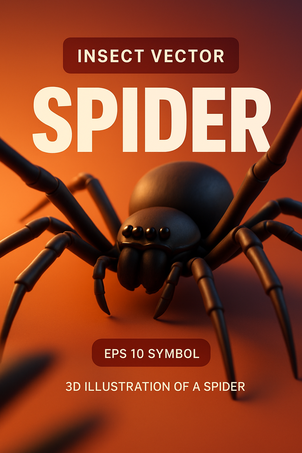 /Collection: /by davooda/Type: PNG/A detailed 3D illustration of a spider, designed for insect-related themes. The graphic features a vibrant color scheme and modern design elements, suitable for educational or creative uses.