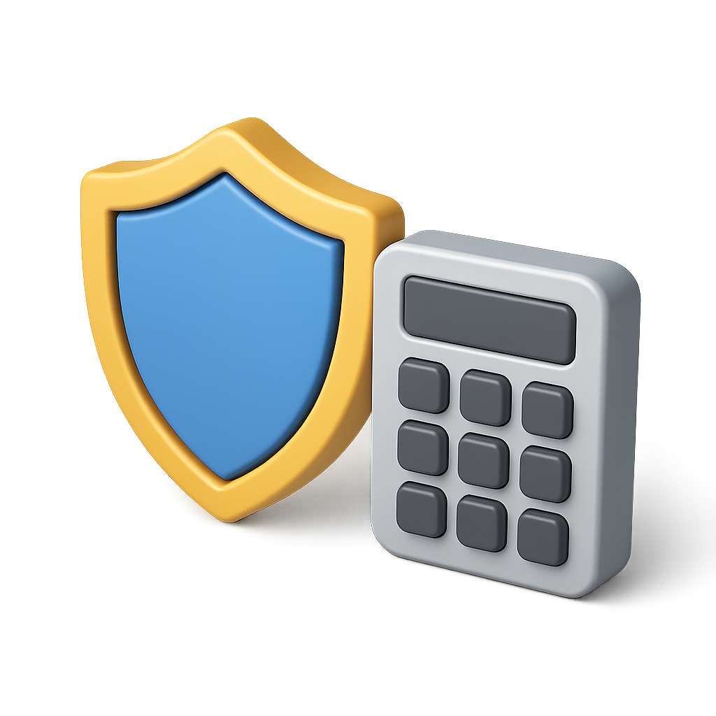 A vibrant 3D representation featuring a shield in blue and yellow alongside a grey keypad. The design emphasizes a three-quarter isometric view with a modern, volumetric style.