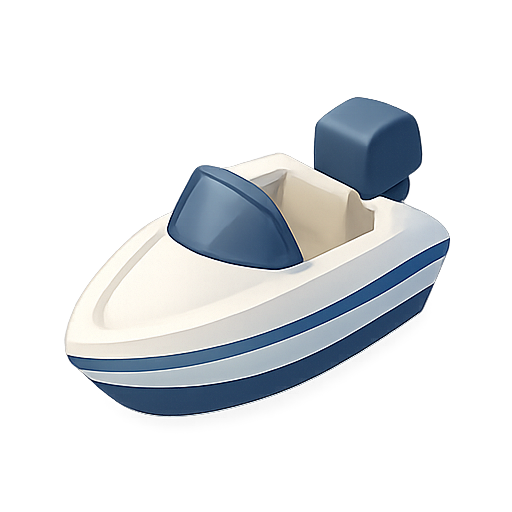 3D Cartoon Style Boat Icon on Waves