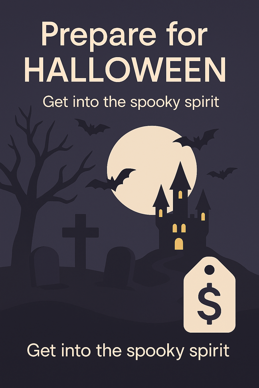 A visually engaging Halloween promotional graphic featuring a spooky castle, bats, and a full moon, ideal for seasonal marketing and event promotions.