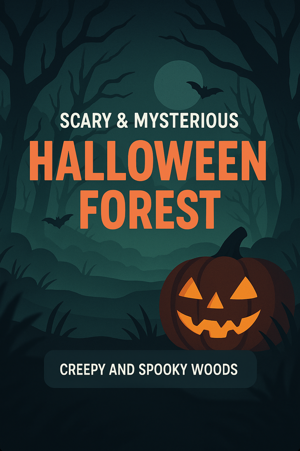 Halloween Themed Graphic Featuring Creepy Forest and Pumpkin