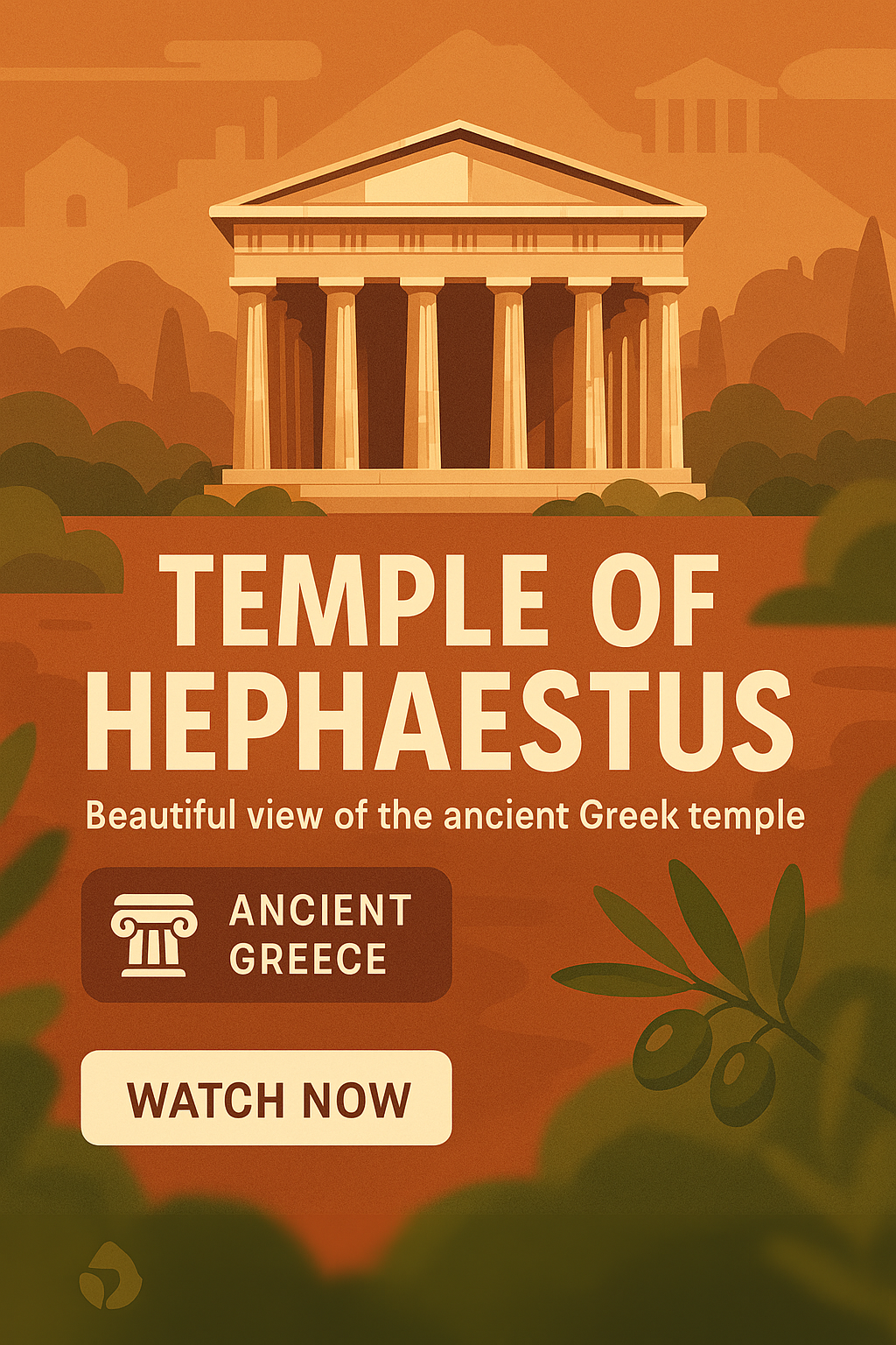 /Collection: /by davooda/Type: PNG/Digital illustration showcasing the Temple of Hephaestus, highlighting its architectural beauty with warm color tones. Ideal for educational content or travel promotion.