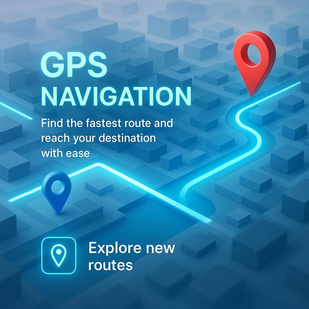 /Collection: /by davooda/Type: PNG/A sleek and modern 3D city map featuring GPS navigation routes and destination pins. The design utilizes blue tones and abstract urban elements, conveying a sense of planned travel.