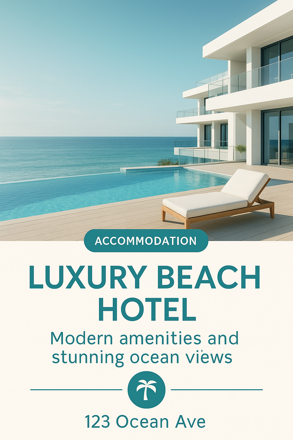 Luxury Beach Hotel Promotional Graphic with Ocean View