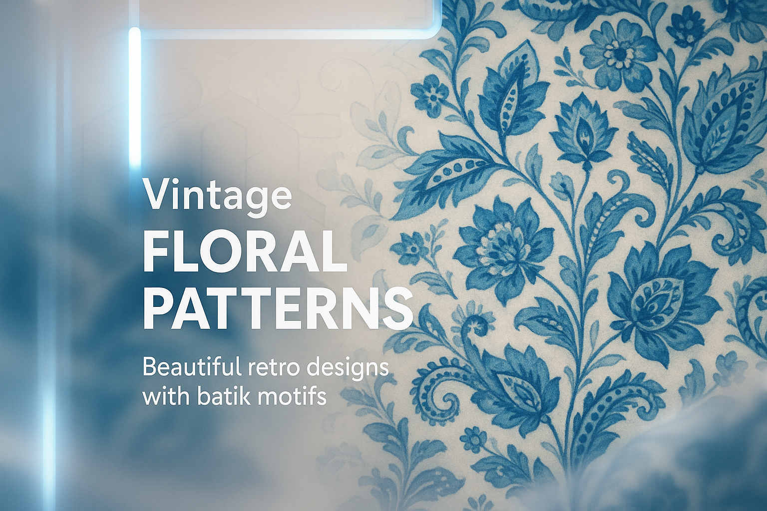 Stylish graphic showcasing vintage floral patterns with batik motifs, ideal for design projects, home decor, or textile advertising.