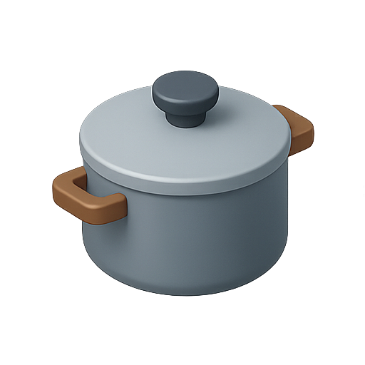 A minimalist, stylized icon of a cooking pot featuring a smooth finish and simple color palette. Ideal for culinary applications in digital interfaces.