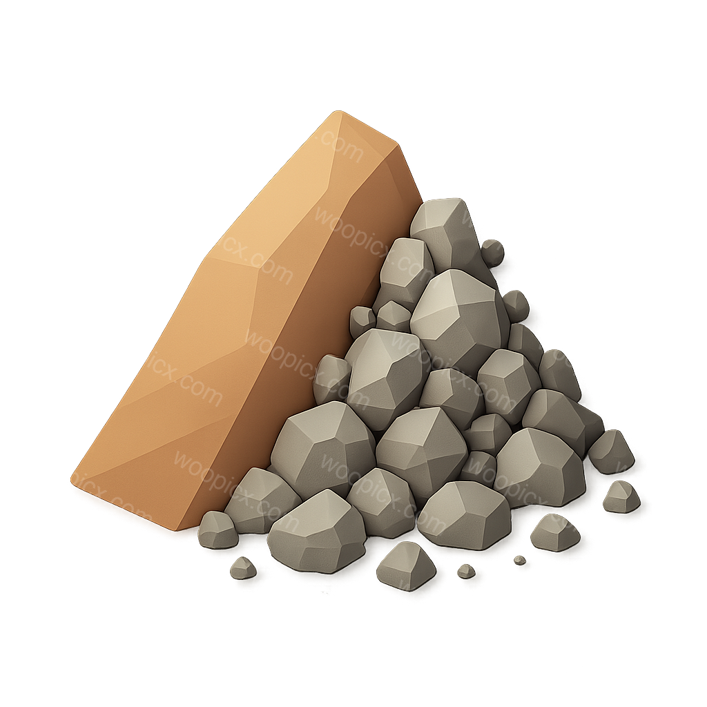 A 3D representation of a talus slope featuring a prominent orange rock with a pile of gray stones, designed in an isometric style on a transparent background.