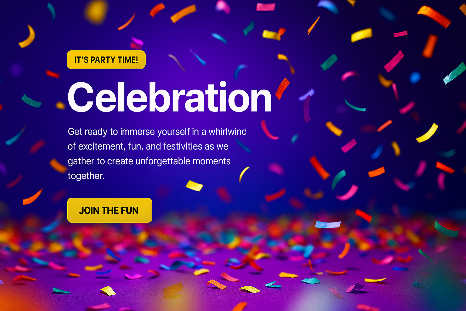 /Collection: /by davooda/Type: PNG/A dynamic and colorful celebration scene featuring an explosion of confetti against a blurred abstract background. The foreground includes engaging text elements inviting participation.