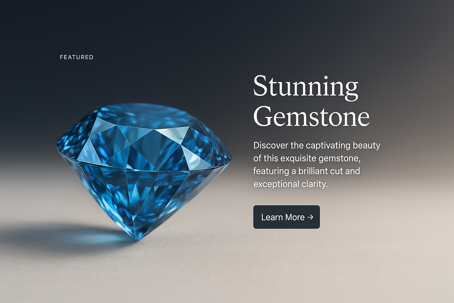 A visually striking interface featuring a stunning blue gemstone with a modern layout. The design includes a captivating headline, text block, and action button.