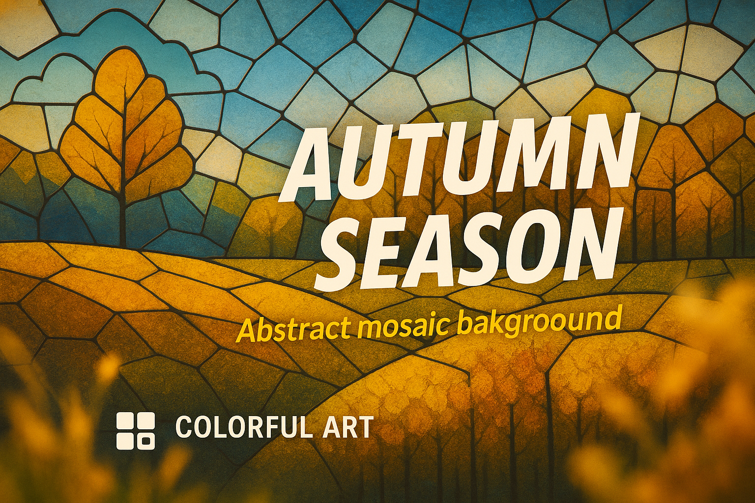 Vibrant Autumn-Themed Graphic with Mosaic Design