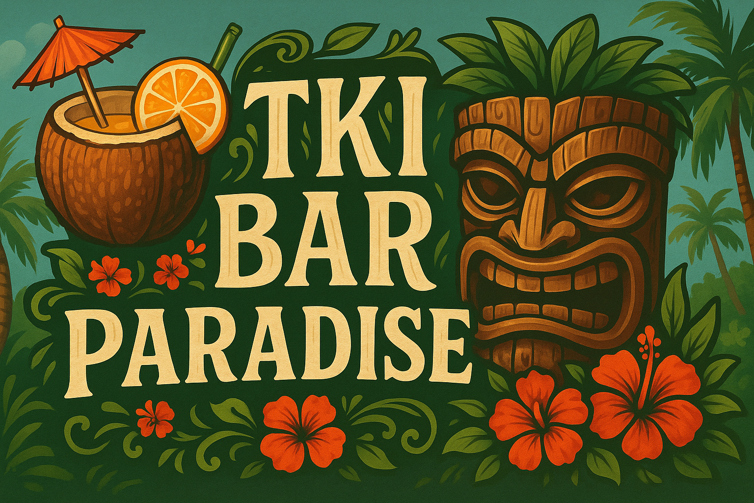Vibrant Tiki Bar Graphic Design for Tropical Theme
