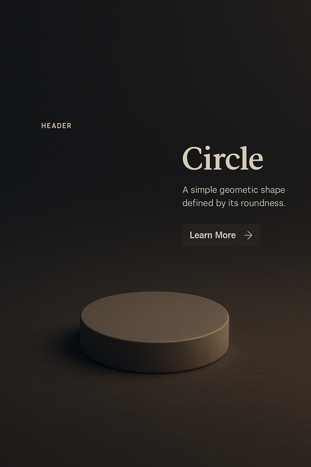 /Collection: /by davooda/Type: PNG/A visually appealing 3D representation of a circle on a dark gradient background. The scene features a simple geometric shape, accompanied by a header, description, and a call-to-action button.