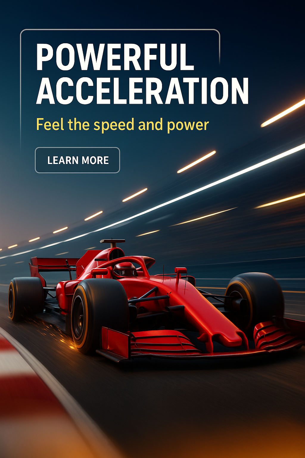 Dynamic Racing Car Image Promoting Acceleration Experience