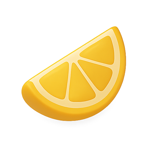 A vibrant and playful illustration of a lemon slice, featuring bright yellow tones and a smooth design, perfect for food-related themes or summer promotions.