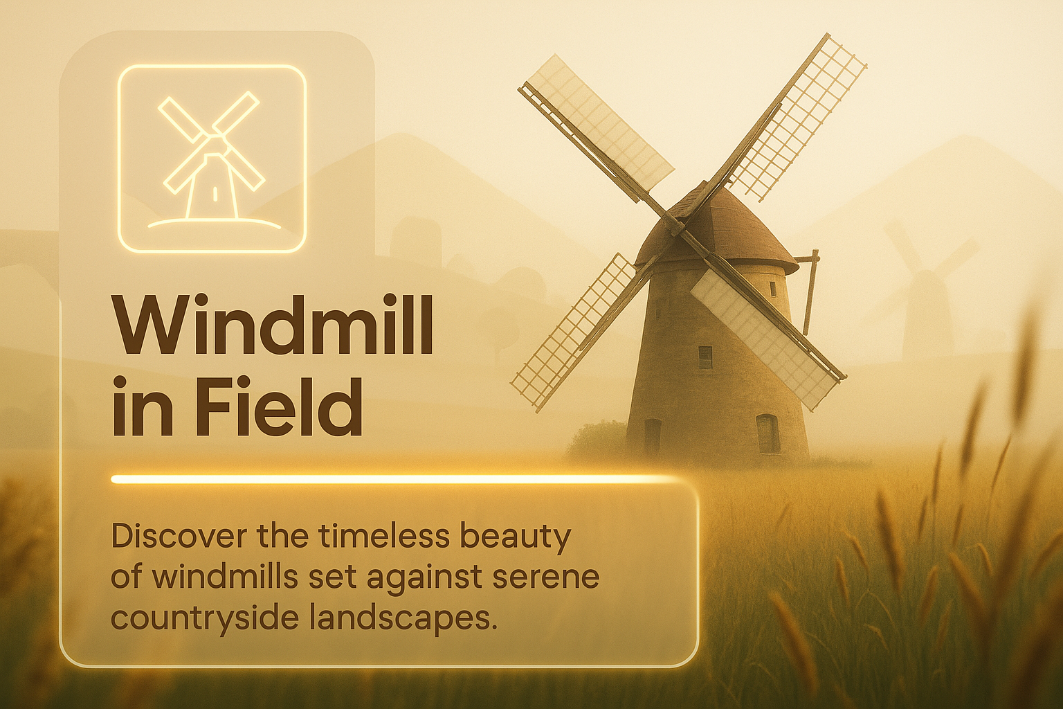 A tranquil image featuring a windmill set in a field, surrounded by a dreamy countryside landscape. The soft lighting and muted colors create a peaceful atmosphere, ideal for nature-themed content.