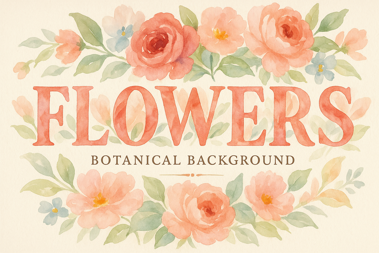 Beautiful botanical background featuring soft watercolor flowers and leaves, ideal for invitations, greeting cards, or decorative purposes.