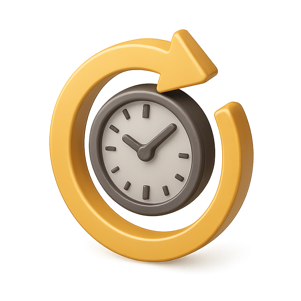 Elegant 3D Icon of a Clock with Refresh Symbol