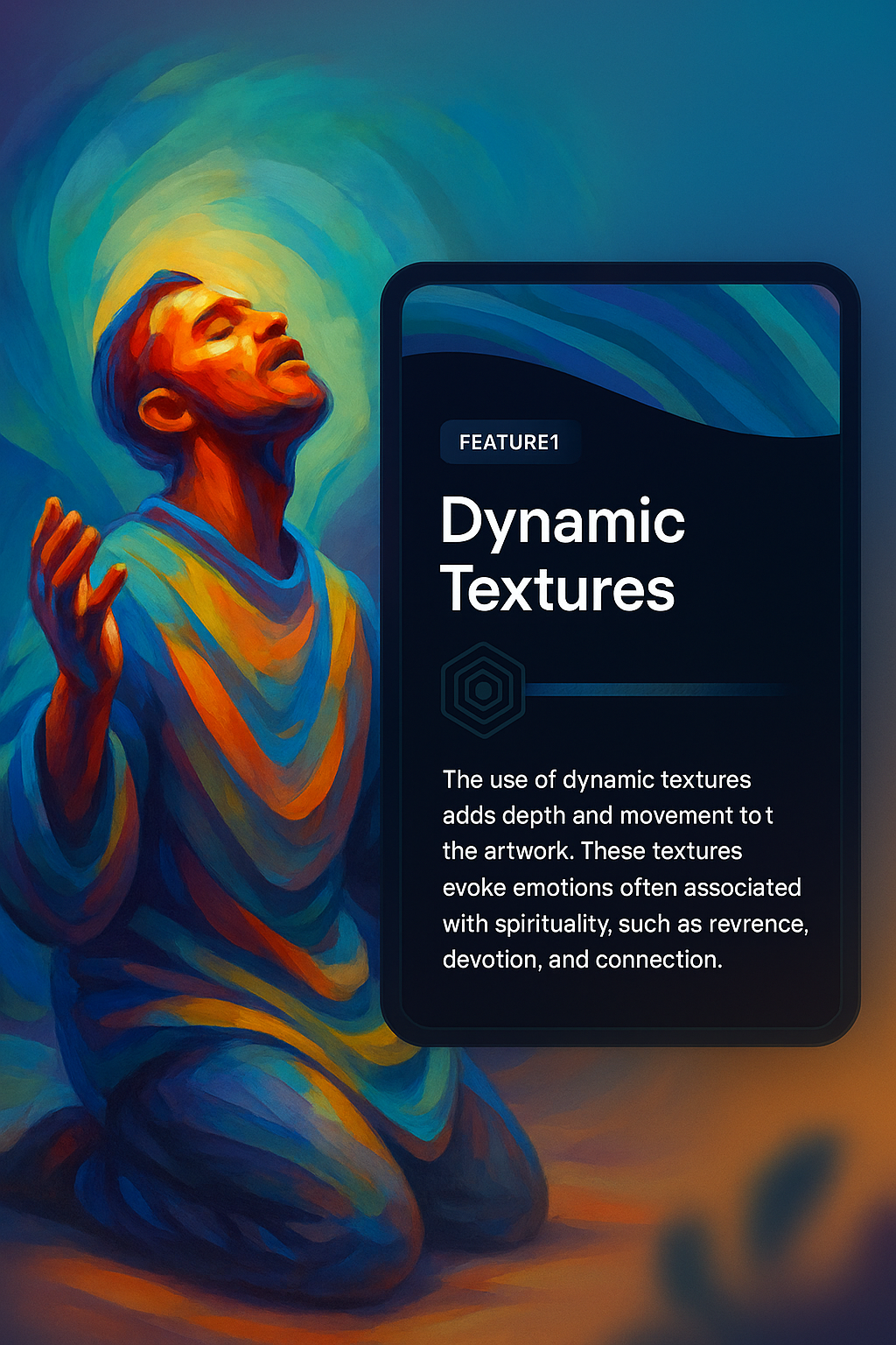 An abstract painting showcasing a man kneeling in prayer. Vibrant colors convey deep emotion, enhancing the theme of Christian worship and devotion.