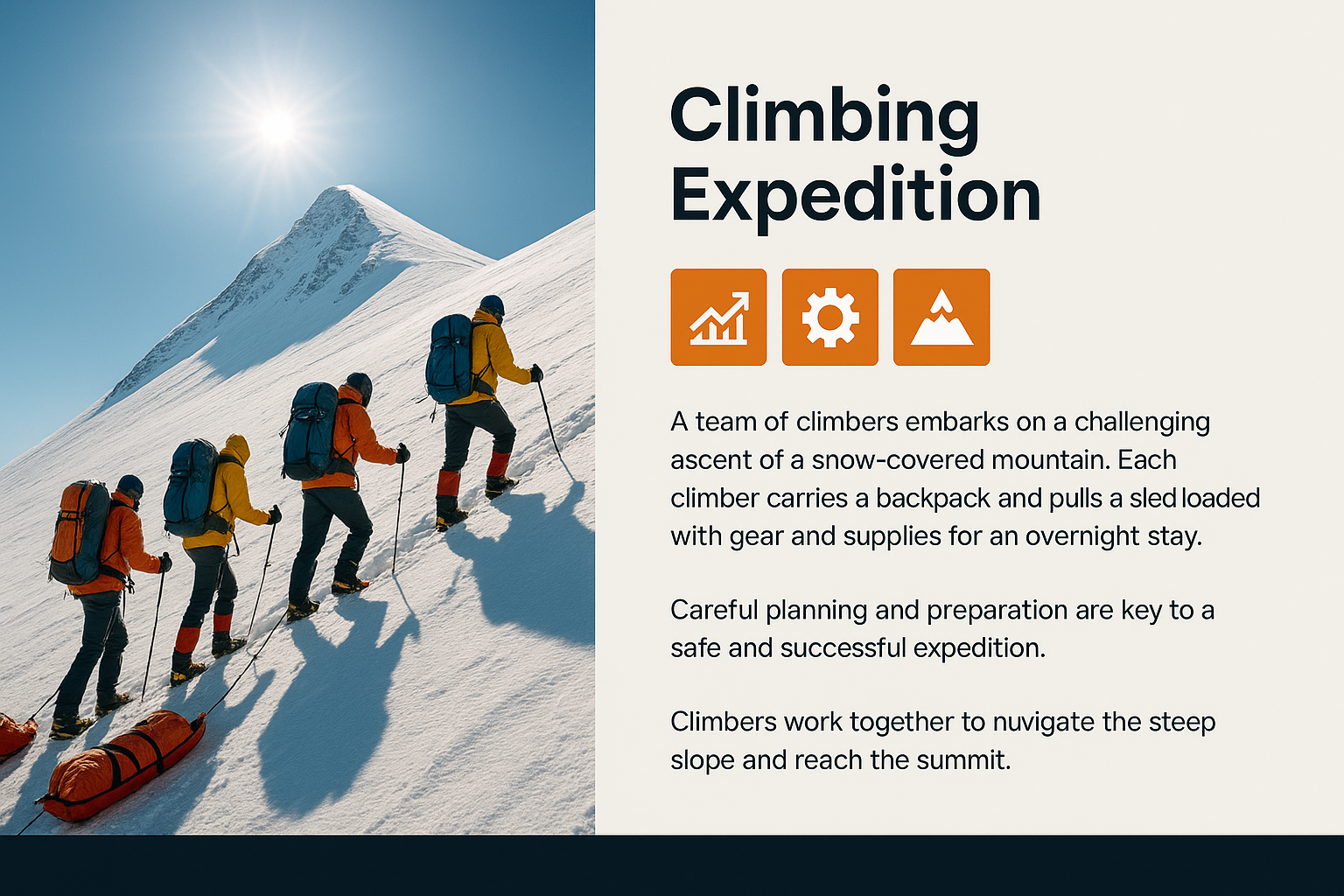Mountain Climbing Expedition Graphic with Team and Equipment