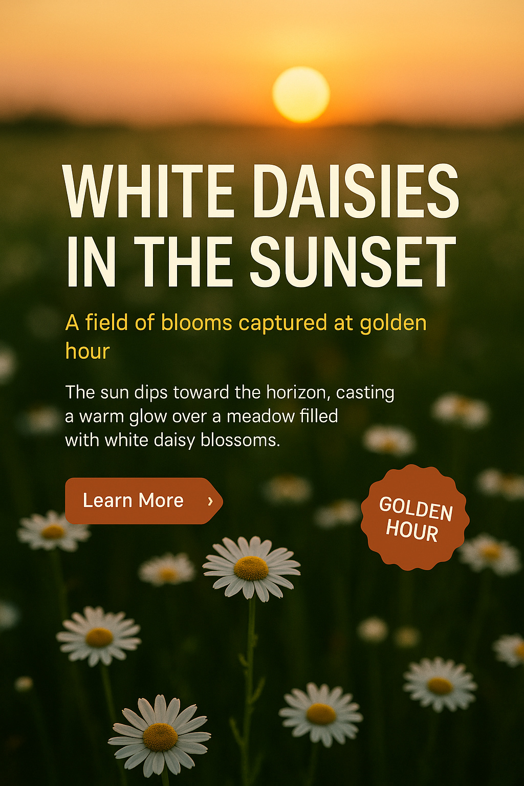 Golden Hour Landscape of White Daisy Blooms at Sunset