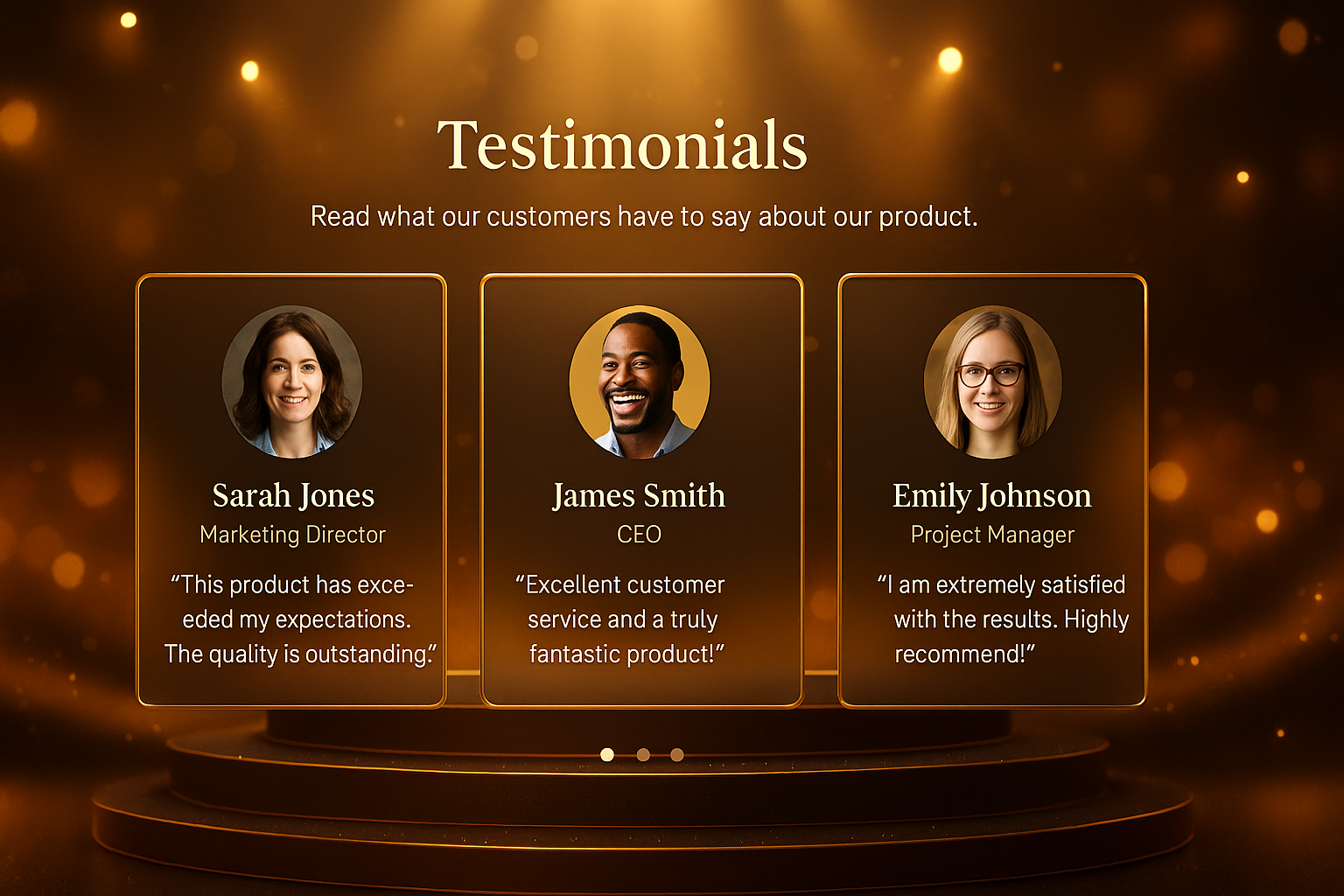 /Collection: /by davooda/Type: PNG/A luxurious gold stage backdrop featuring glowing bokeh effects, designed for a testimonials section. Ideal for awards ceremonies and high-end product promotions.