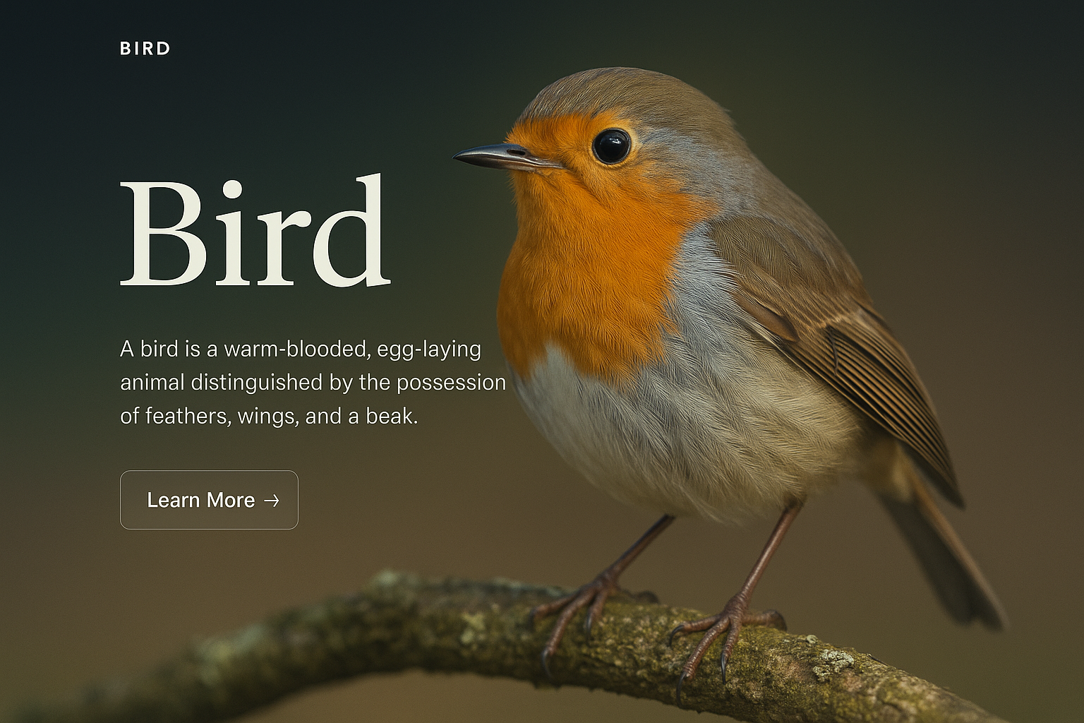 /Collection: /by davooda/Type: PNG/A beautifully detailed illustration of a bird perched on a branch, featuring a warm gradient background. The design includes a small label and action button for web integration.