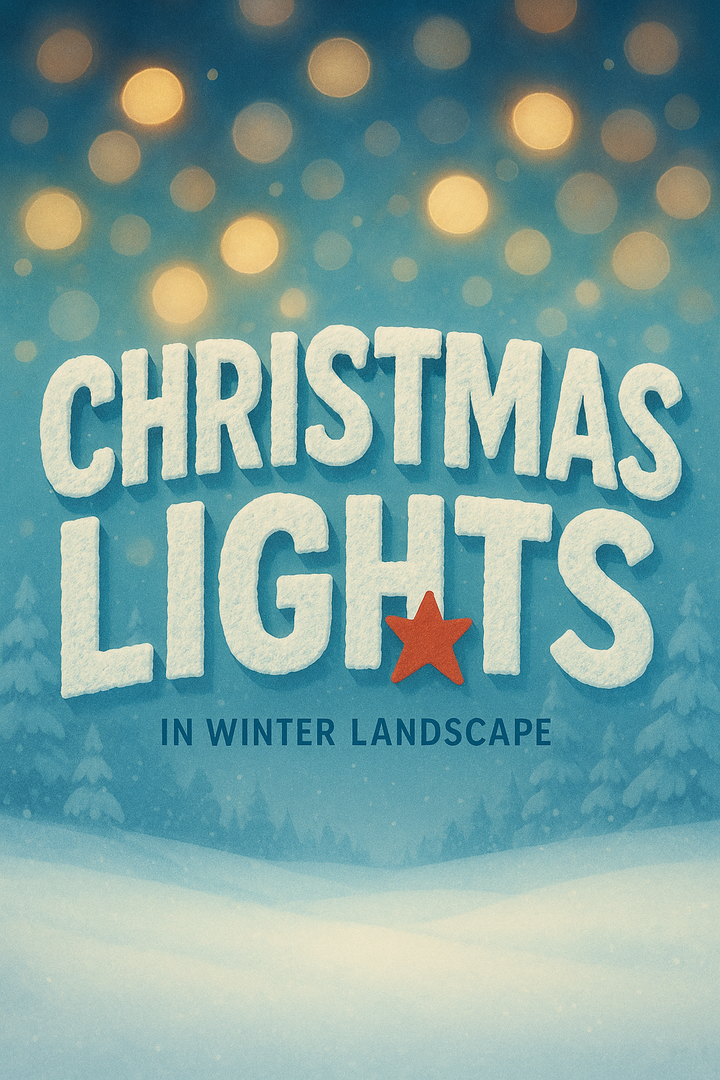 Charming winter-themed graphic featuring the text 'Christmas Lights' against a snowy backdrop, ideal for holiday promotions or seasonal greetings.