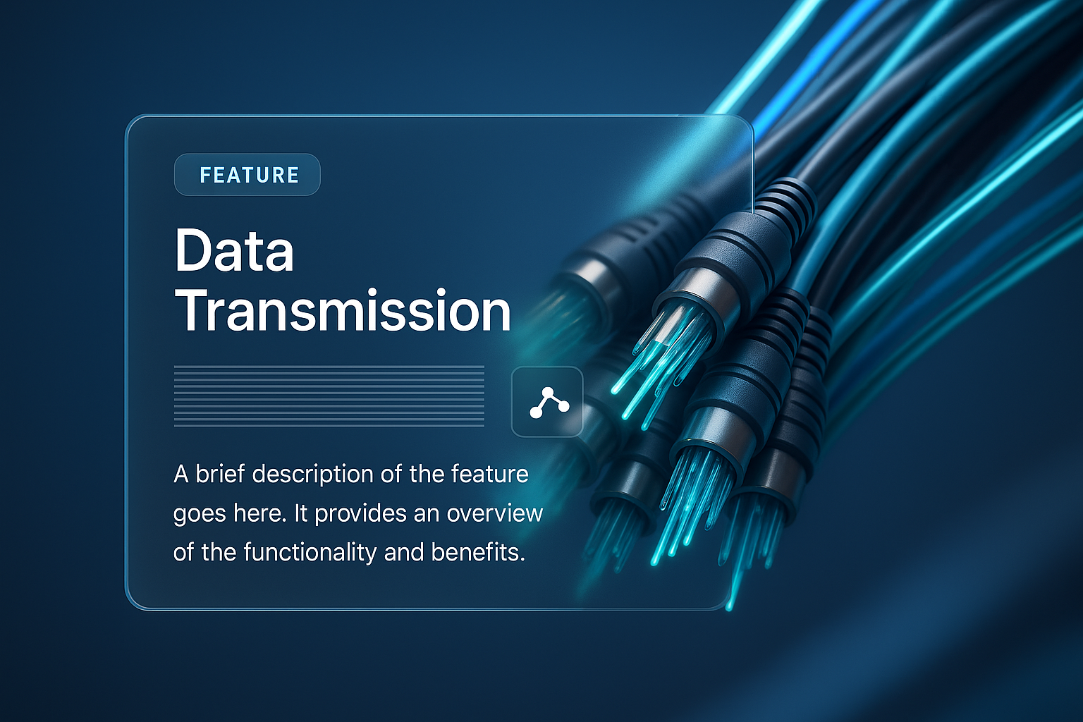/Collection: /by davooda/Type: PNG/A visually striking 3D render showcasing a bundle of dynamic network cables during data transmission. The image features a sleek design with a gradient background and a text block detailing the feature.