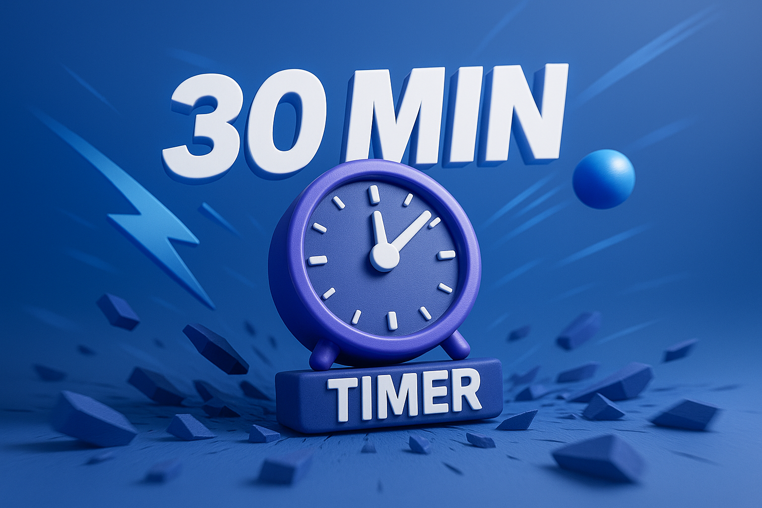 This image features a 3D timer graphic, designed to convey urgency and time management. The vibrant blue background and dynamic elements enhance its visual appeal, suitable for digital platforms.