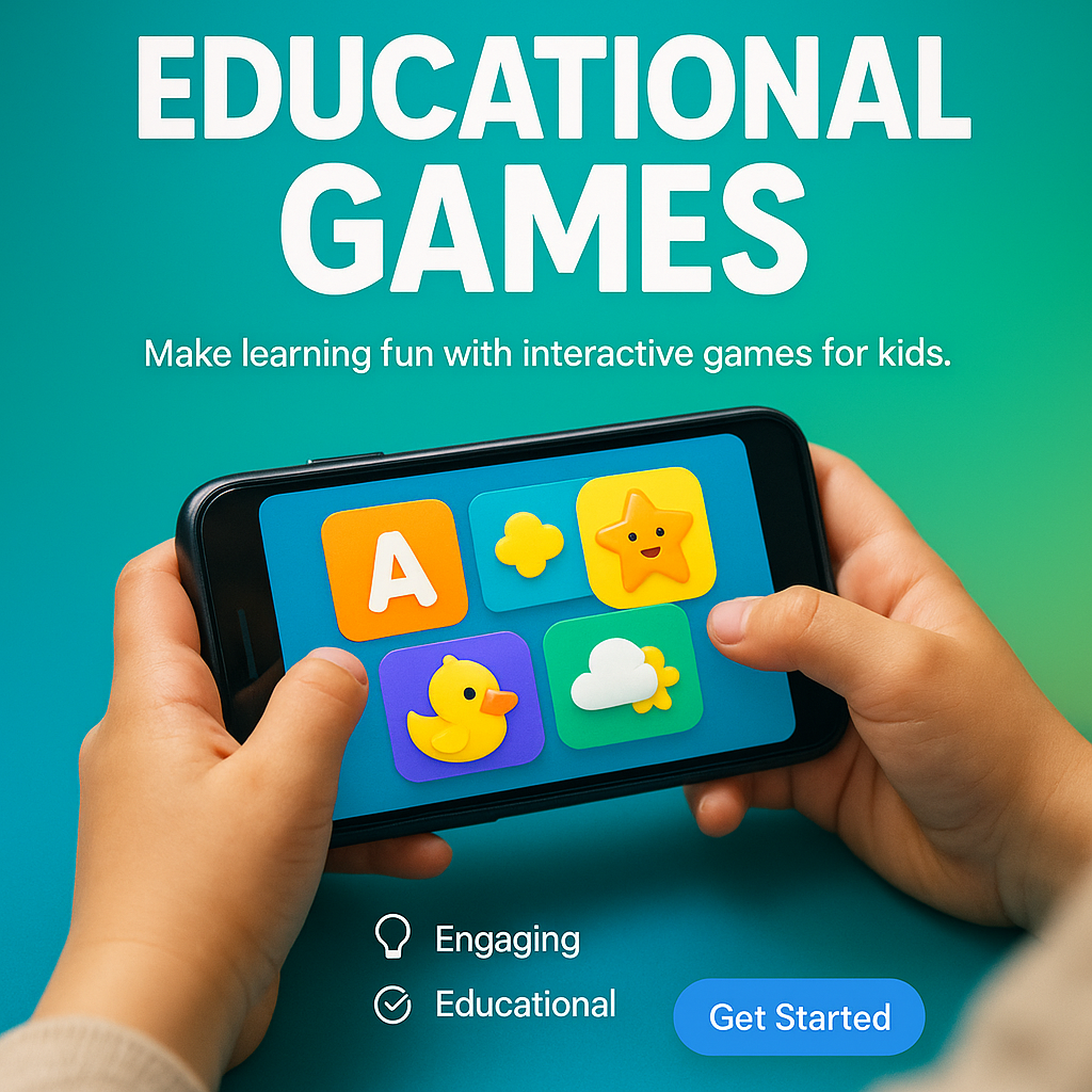 /Collection: /by davooda/Type: PNG/This image showcases a mobile app interface featuring educational games for children. The vibrant colors and engaging design aim to attract a young audience and promote interactive learning.