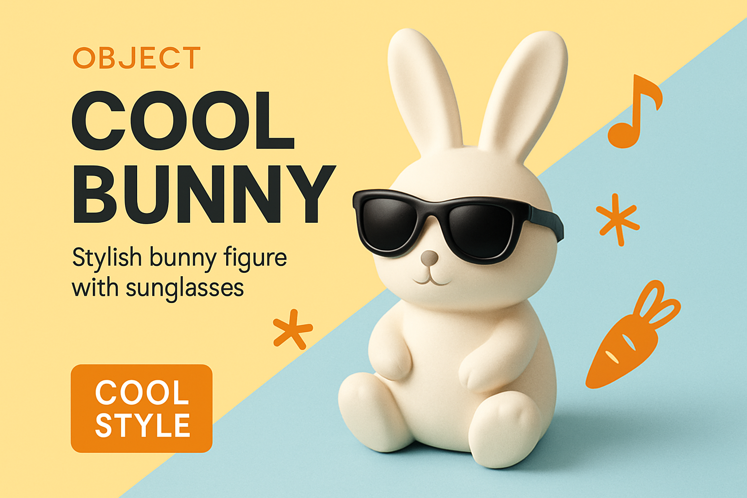 Stylish Bunny Advertisement with Sunglasses and Colorful Background