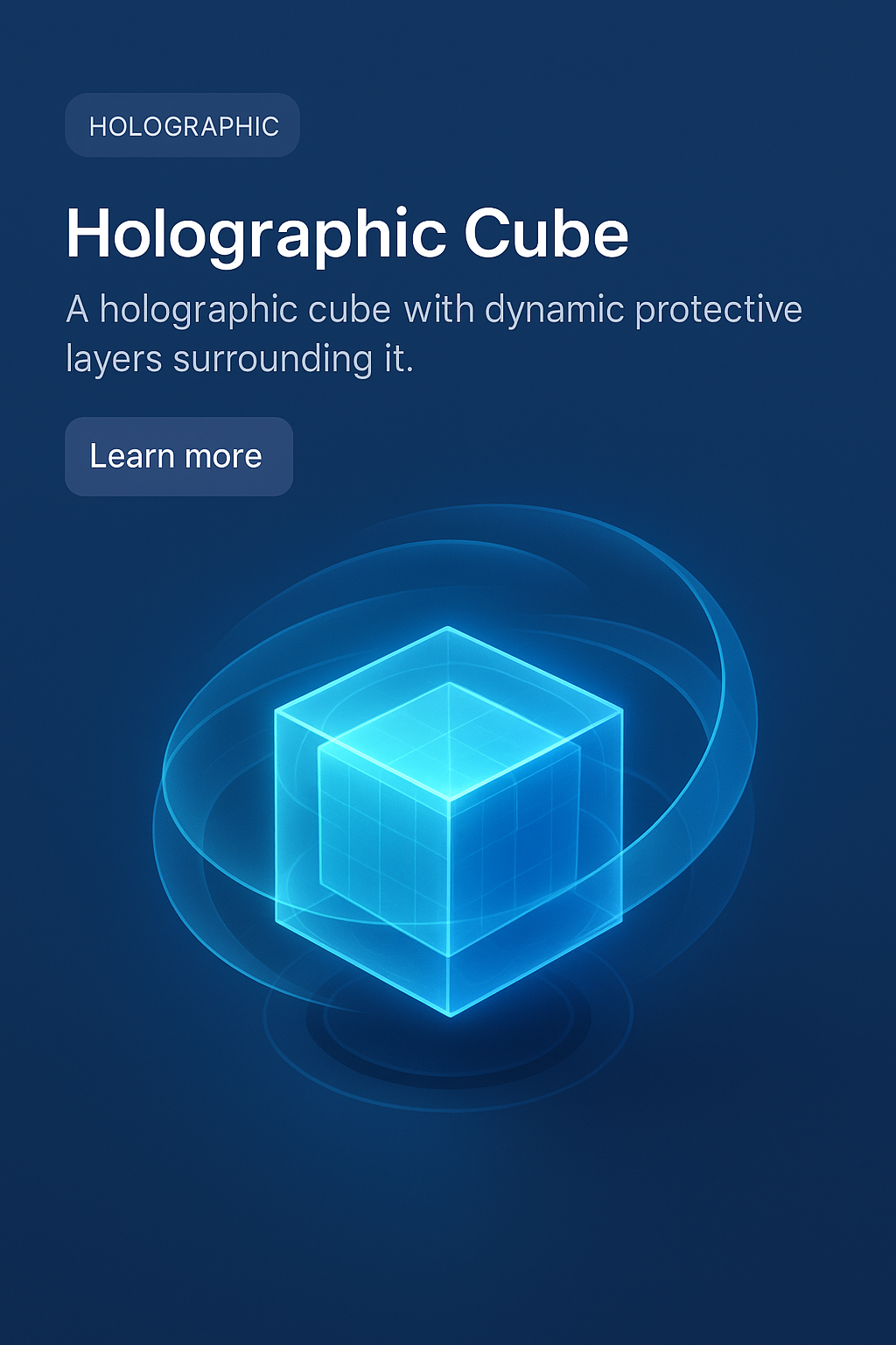 /Collection: /by davooda/Type: PNG/A detailed 3D illustration of a holographic cube surrounded by dynamic protective layers. The design features a smooth gradient background and clear text elements.
