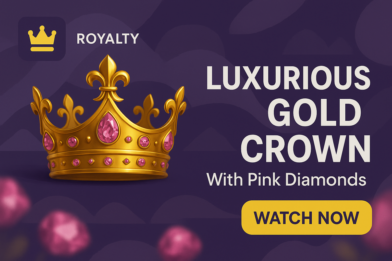 Stylized Graphic of a Royal Gold Crown with Pink Diamonds
