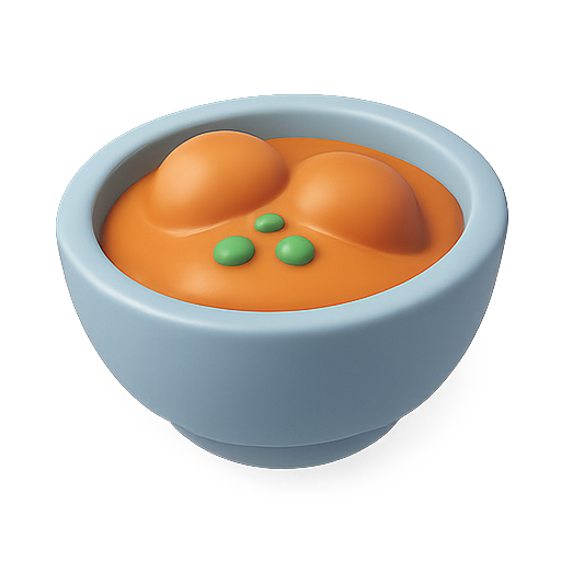 A playful and stylized image of a bowl filled with soup featuring a smooth, vibrant orange surface and rounded shapes, ideal for food-related design projects or playful branding.
