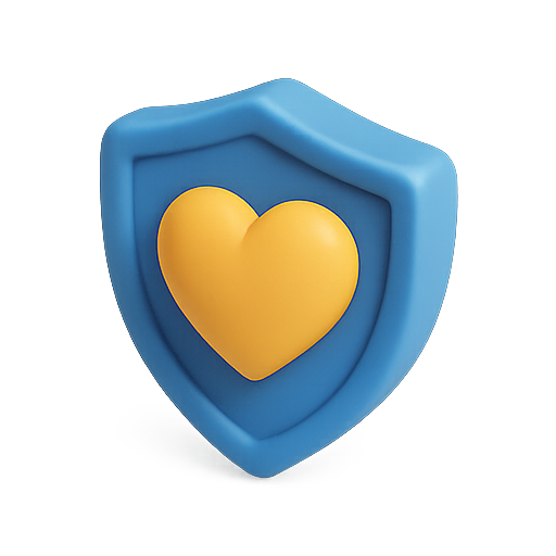 A 3D-rendered heart icon placed on a blue shield background, symbolizing protection and care, suitable for health or safety-related applications.