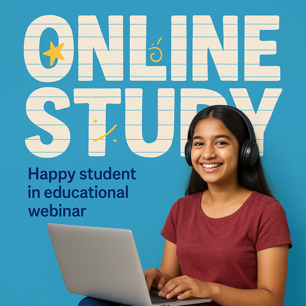 Engaging Online Study Promotional Image Featuring a Happy Student