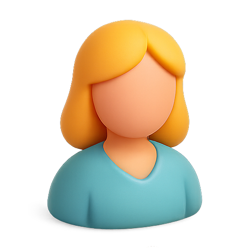 A stylized 3D character illustration representing a woman with blonde hair and a simple design. Suitable for use in digital applications, websites, or avatars.