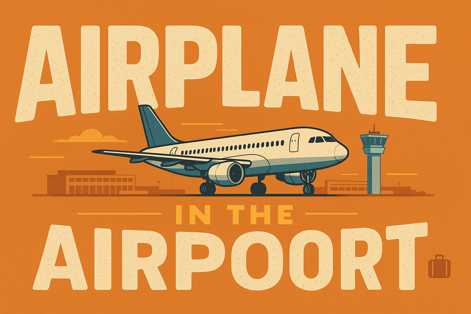 Vibrant illustration featuring an airplane at an airport with bold typography, ideal for travel-themed marketing or educational materials.