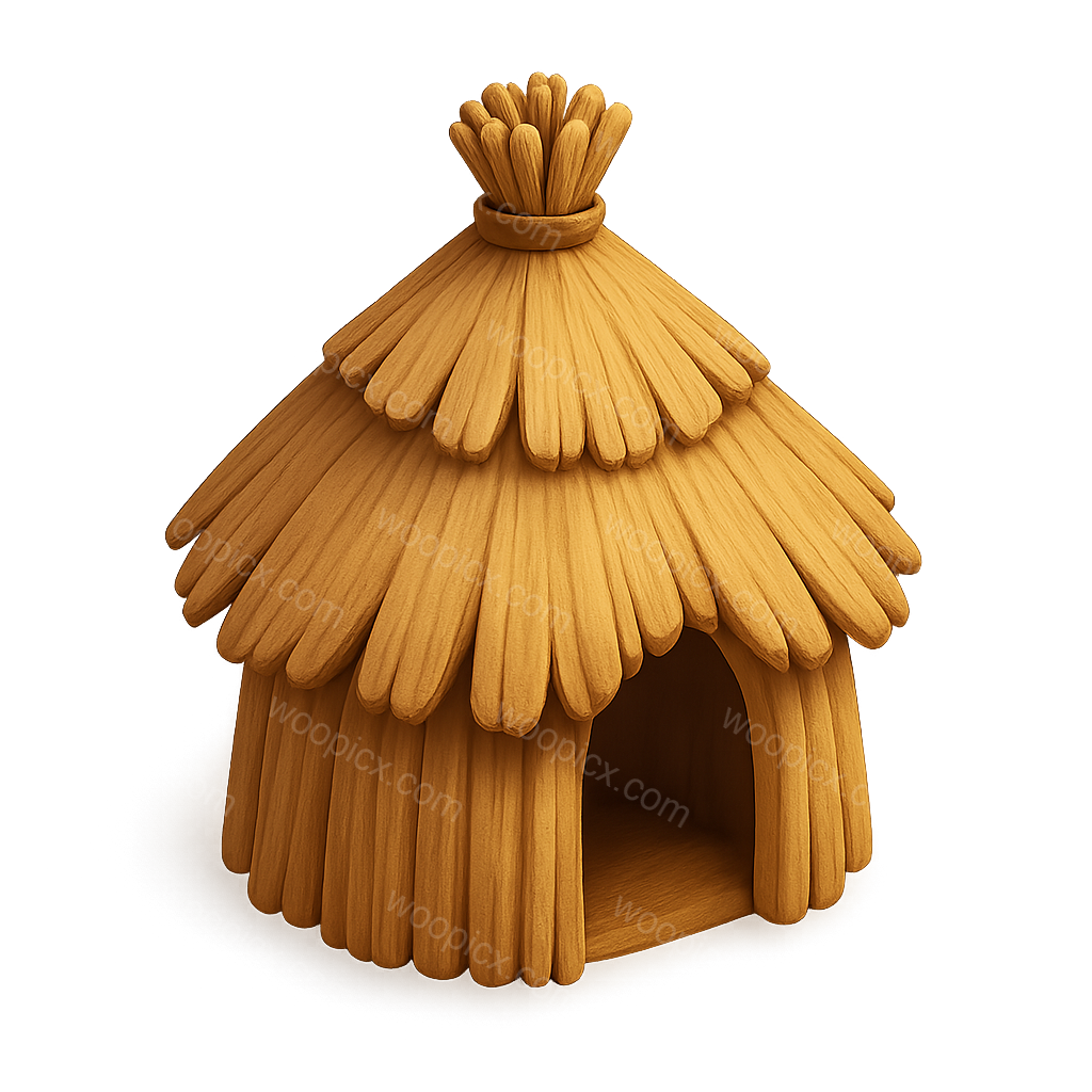 Stylized 3D Primitive Hut Icon with Volumetric Design