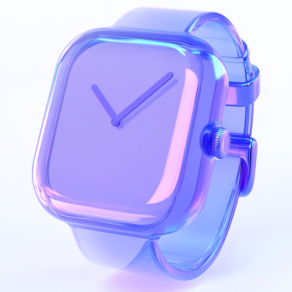 /Collection: /by davooda/Type: PNG/A contemporary 3D rendering of a transparent digital watch featuring a sleek design in vibrant purple tones. Ideal for showcasing innovative wearable technology.